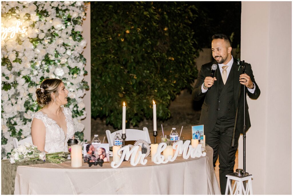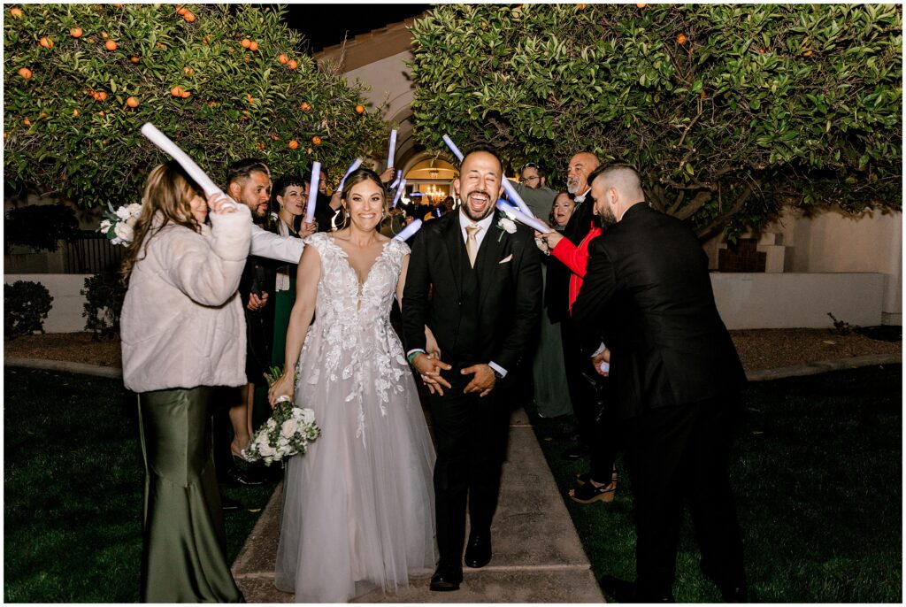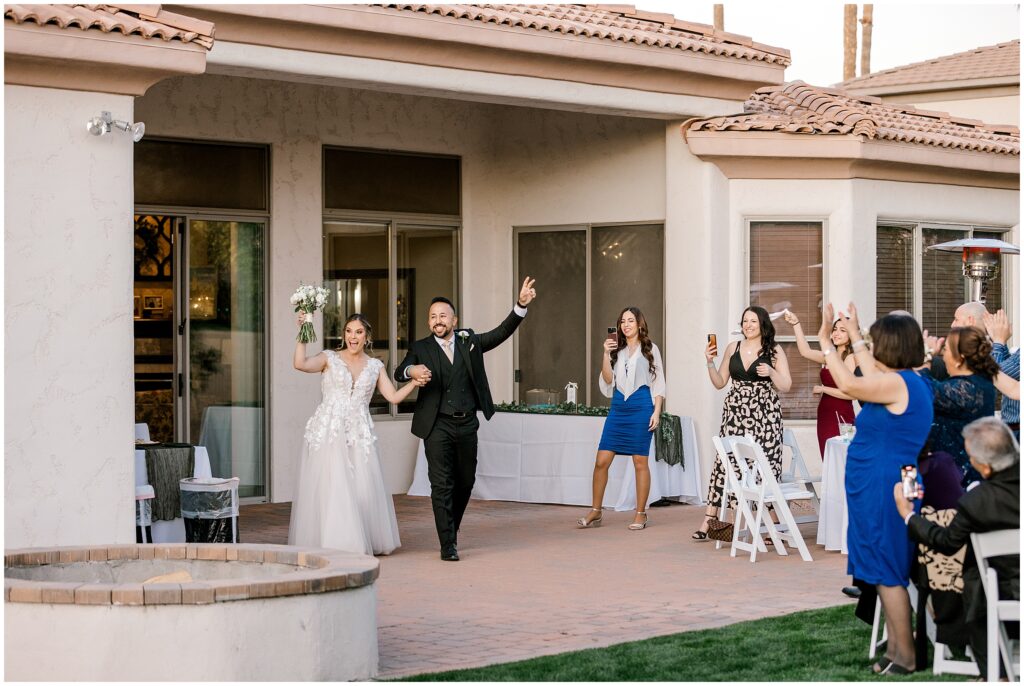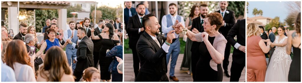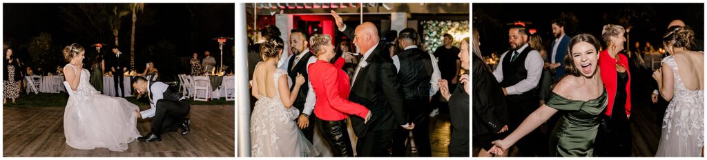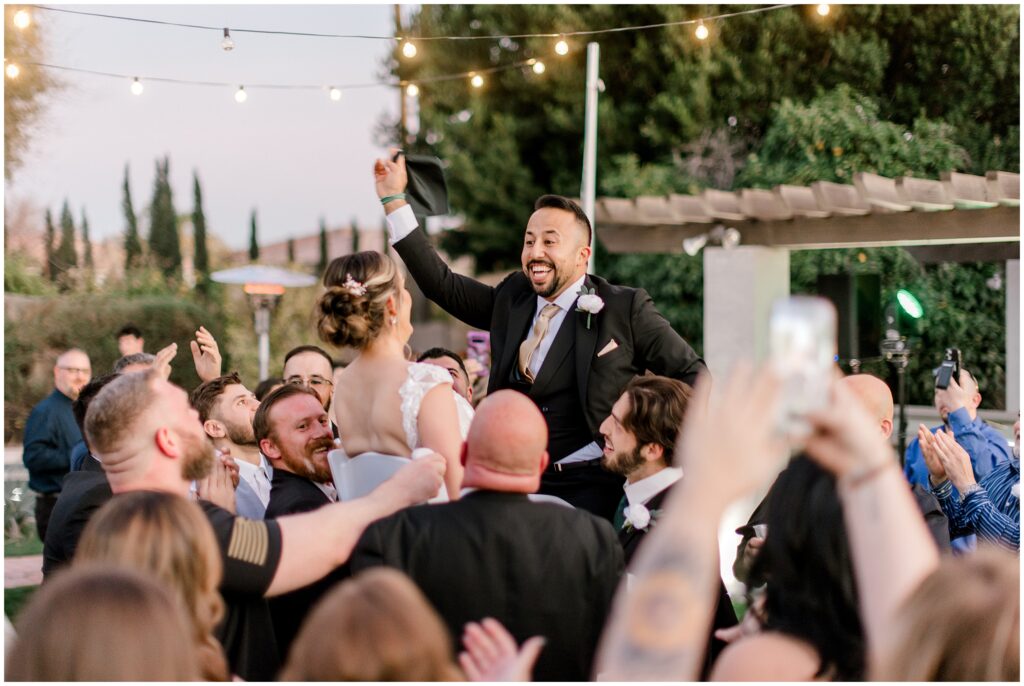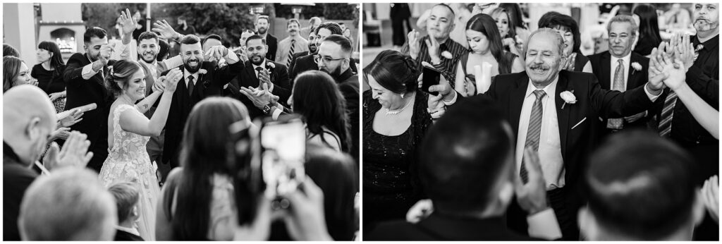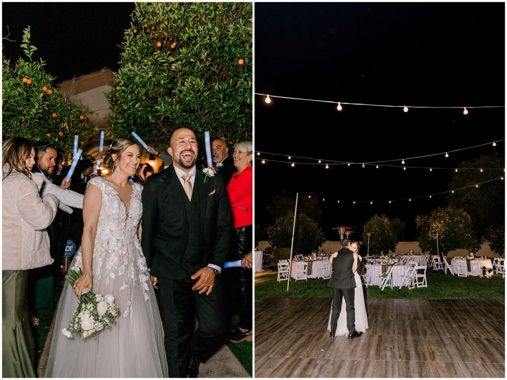 Their celebration continued at a private home nestled in the middle of orange orchards, where friends and family gathered to honor Erin & AB’s love. As they made their grand entrance, the energy was electric, and the night kicked off with a traditional Arabic circle dance, bringing everyone together in celebration.