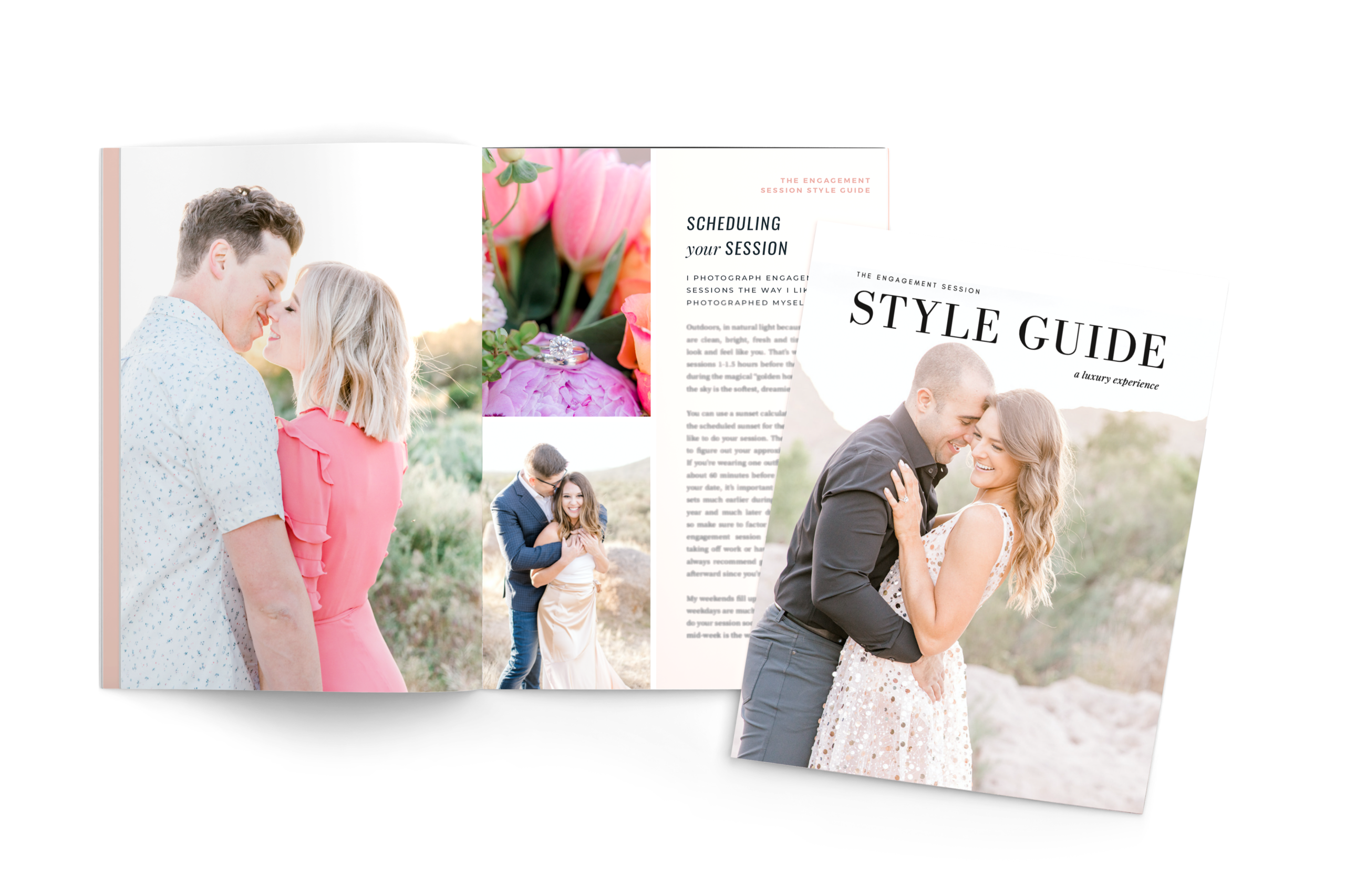 Every wedding and engagement collection comes with an engagement session style guide that covers everything you need to know from lighting to location, what to wear, and my best tips and tricks for nailing your photos and loving how you look. This magazine is a lifesaver if you are getting professional photos taken for the first time, have no idea where to begin