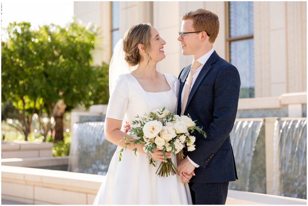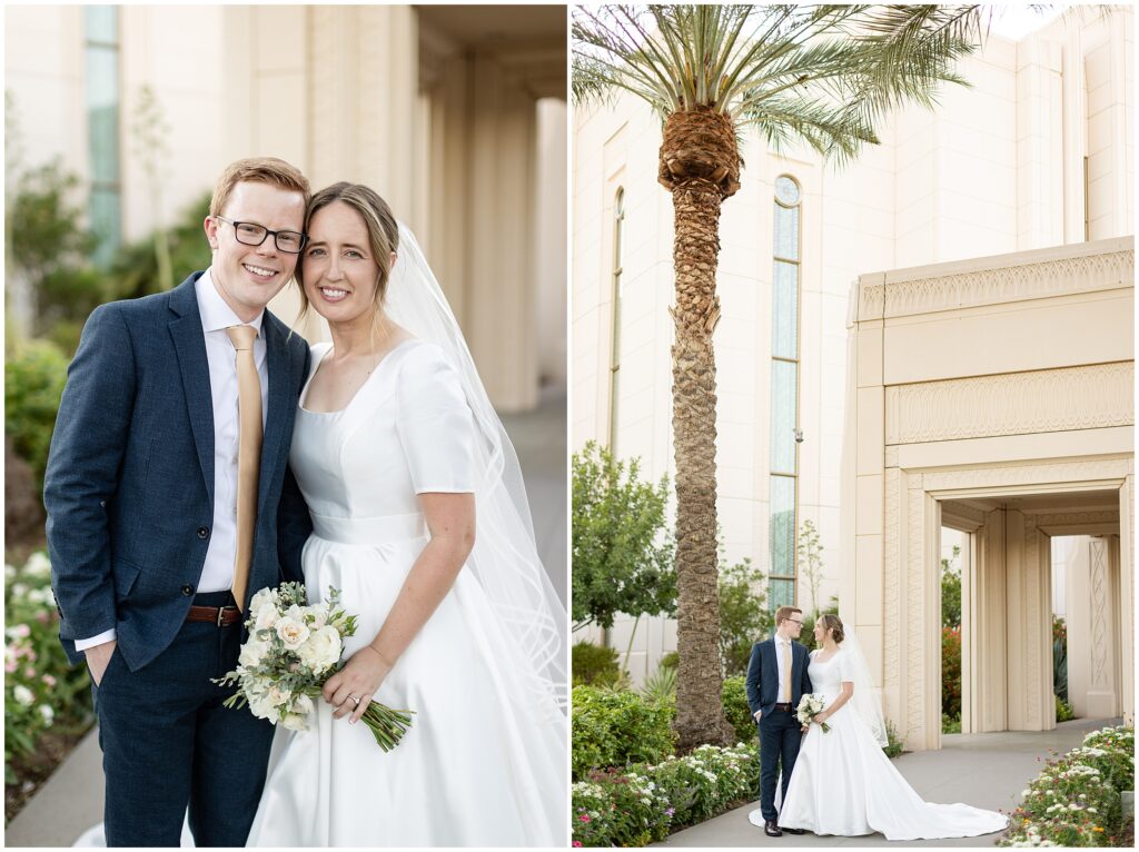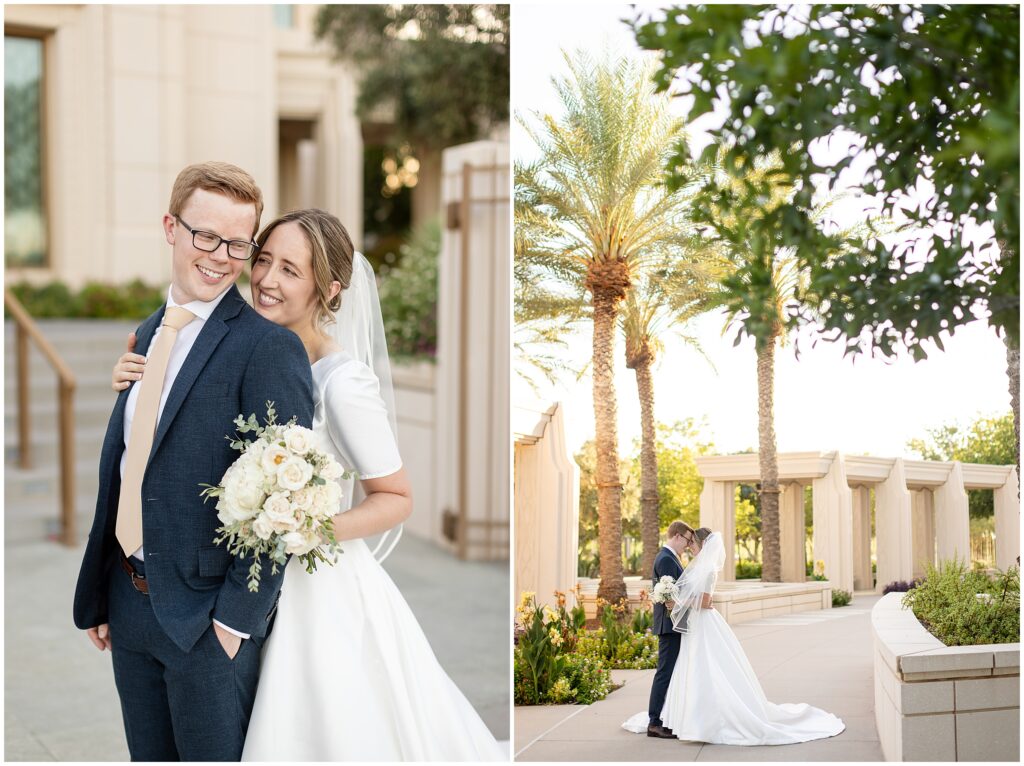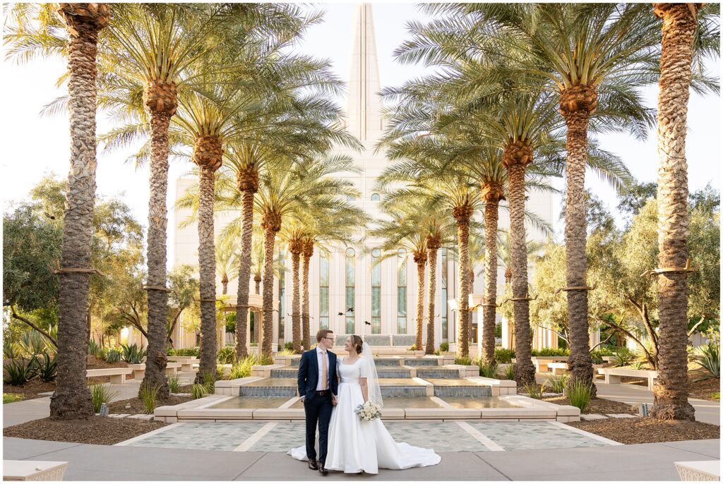 We kicked things off just a few days before the wedding with a bridal session at the Arizona Gilbert Temple. It was the perfect way to soak in the excitement of the upcoming celebration and capture stunning portraits in the most beautiful light. Doing bridals early gave us extra time to focus on Sarah and Nate without the rush of a wedding timeline, and I absolutely love the images we created together.
