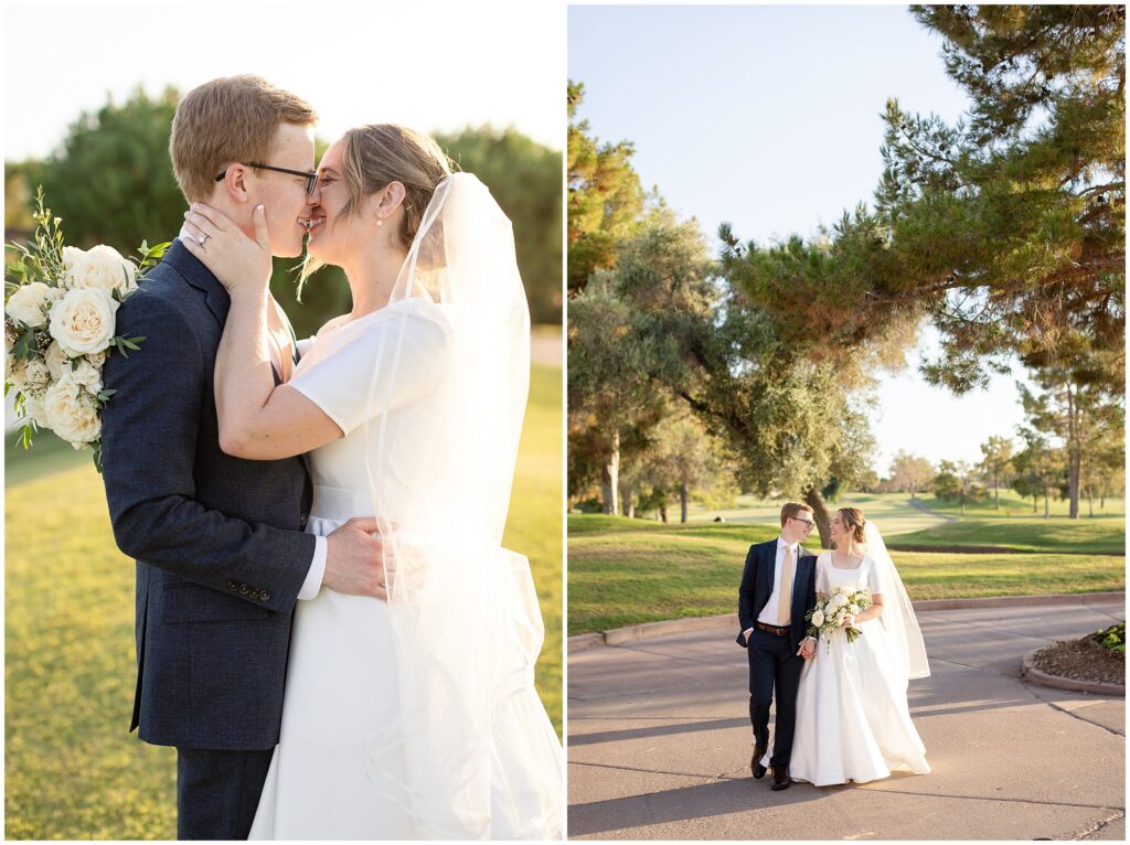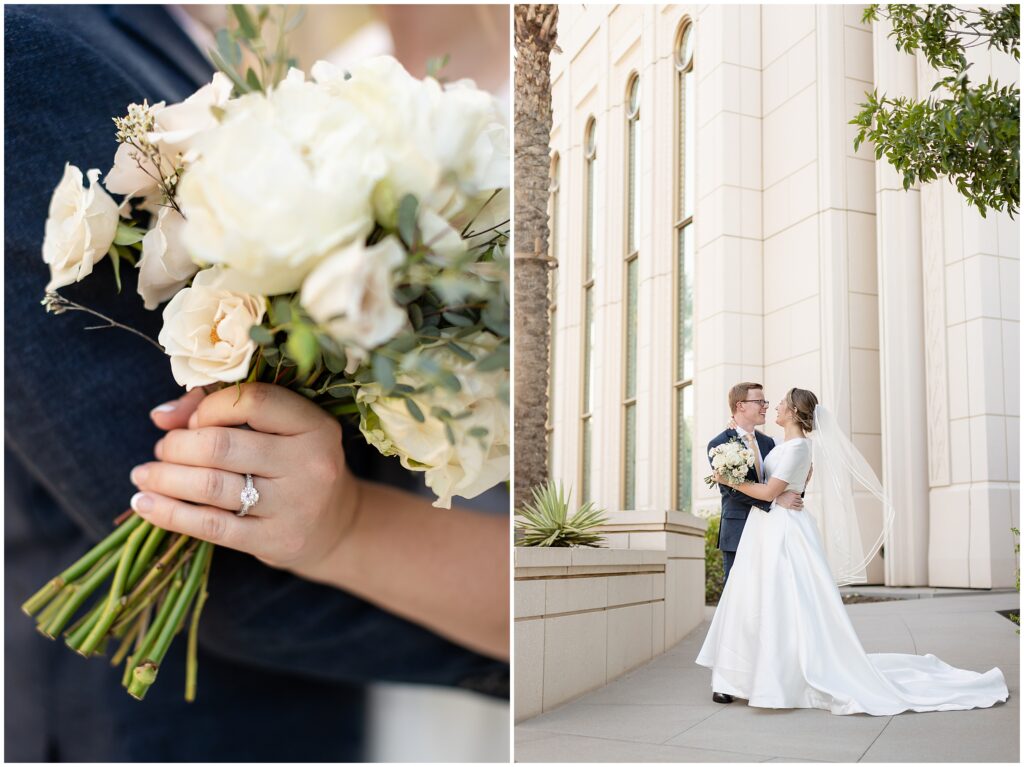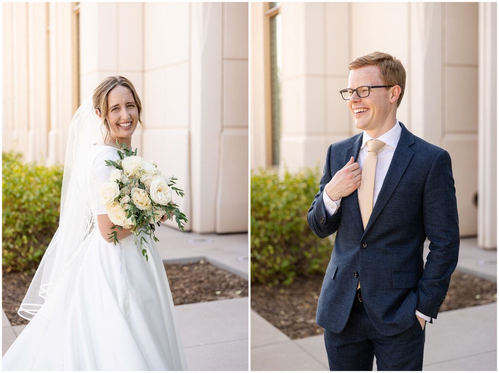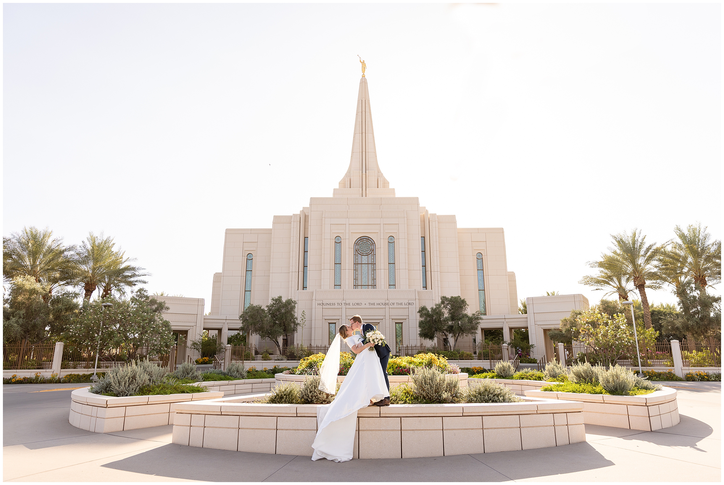 We kicked things off just a few days before the wedding with a bridal session at the Arizona Gilbert Temple. It was the perfect way to soak in the excitement of the upcoming celebration and capture stunning portraits in the most beautiful light. Doing bridals early gave us extra time to focus on Sarah and Nate without the rush of a wedding timeline, and I absolutely love the images we created together.